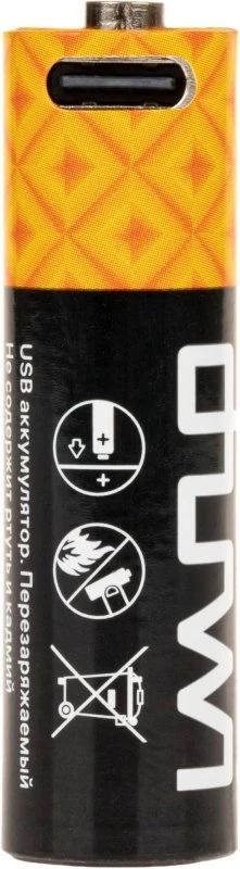Аккумулятор, USB-C, Li-Ion, AA,1.5V, 1800 мАч, 2шт., кабель для зарядки, 62010 5, duwi Duwi