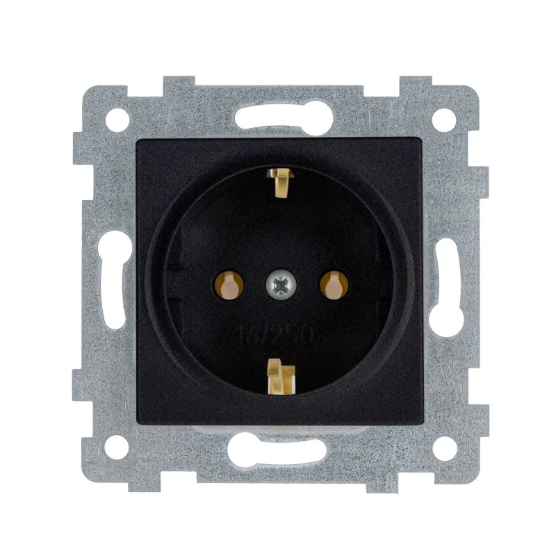 Аксиома Механизм розетки одноместной с заземляющим контактом скрытой установки РС16-453 Антрацит Кунцево-Электро 121033