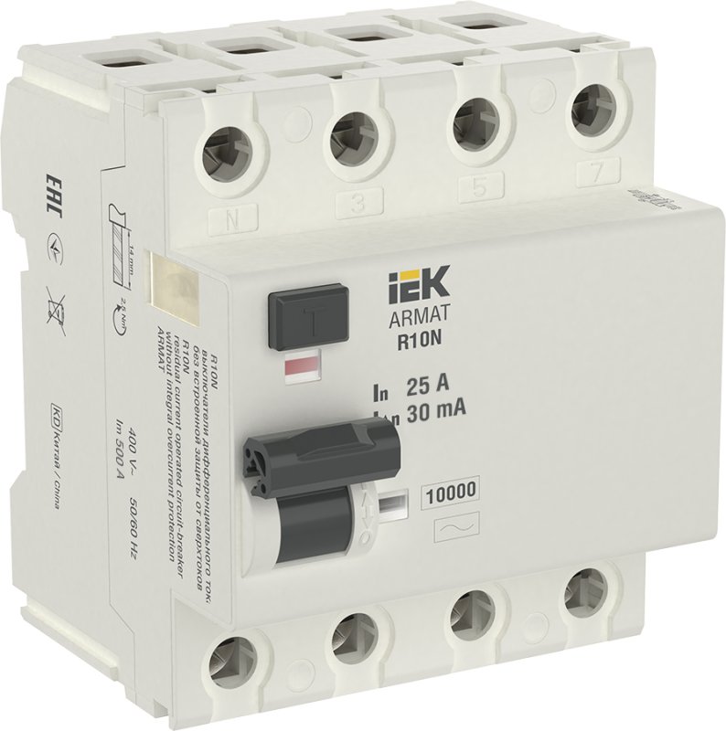 ARMAT Выключатель дифференциального тока R10N (УЗО) 4п 25А 30мА тип AC IEK AR-R10N-4-025C030