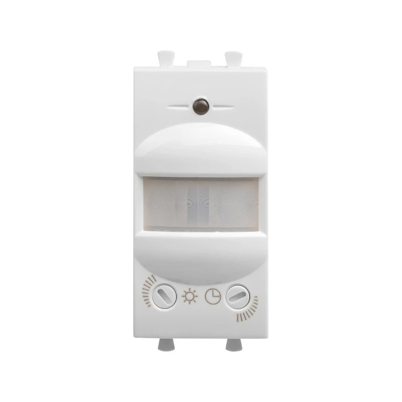 Модульный датчик движения ДКС – составная часть электроустановочных изделий серии 'Avanti'. Прибор размещается в кабель-канале. Его применение позволяет автоматически включать свет в проходных зонах во время присутствия там людей и выключать – когда движения в этой зоне нет. В датчиках установлен пассивный инфракрасный сенсор с дальностью действия 9 метров (фронтально) и углом сканирования 180 градусов. Материал датчика – термопласт. Цвет – 'Белое облако'.