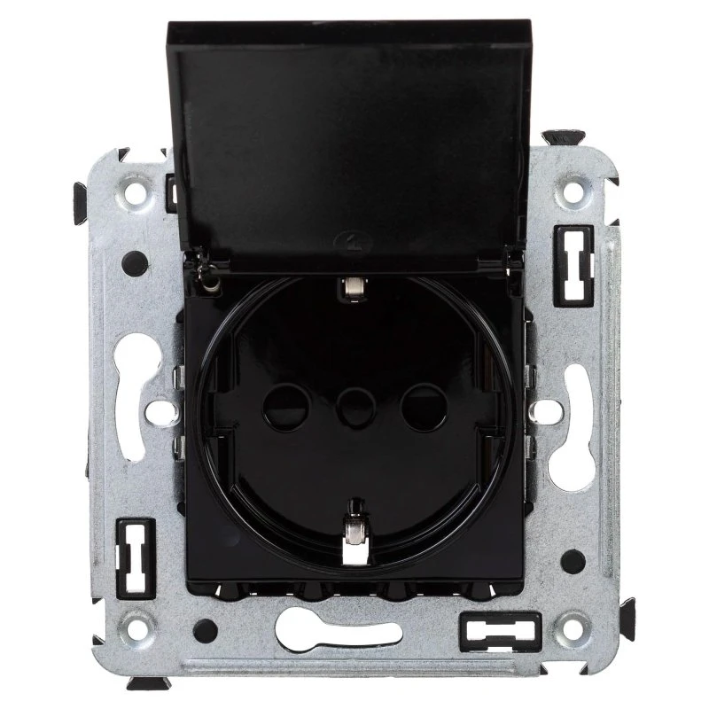 Avanti Розетка с крышкой в стену, 2P+E, ''Черный квадрат'' DKC 4402013