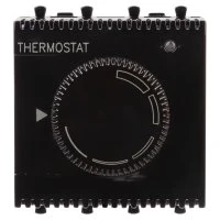Термостат – устройство, предназначенное для регулировки температуры. Компания ДКС предлагает вашему вниманию термостат для теплых полов, применение которого позволяет устанавливать комфортную температуру пола. Двухмодульный термостат монтируется в настенный кабель канал. Номинальное напряжение – 230 В, номинальный ток – 5 А. Эта модель выполнена в цвете 'Черный квадрат'. Этот глубокий, роскошный оттенок придает цветовому оформлению интерьера утонченность.