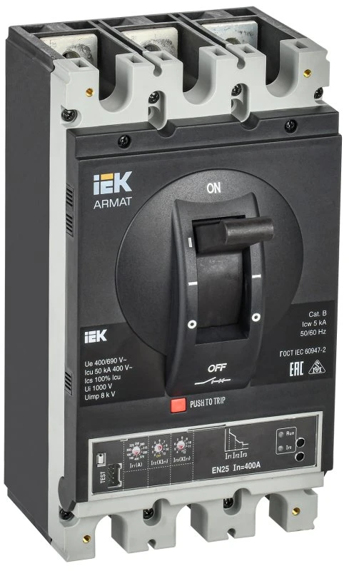 Автоматический выключатель в литом корпусе ARMAT 3P типоразмер H 50кА 400А расцепитель электронный стандартный IEK AR-MCCB-3H-050-0400A-ELSC