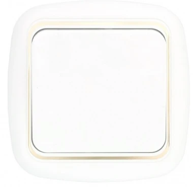 Выключатель одноклавишный на два направления скрытой установки. В качестве материала для производства изделия использовался пластик ABS. Выключатель имеет посеребренные контакты. У выключателя глянцевая поверхность. Он устойчив к УФ-излучению и имеет ударопрочный корпус.