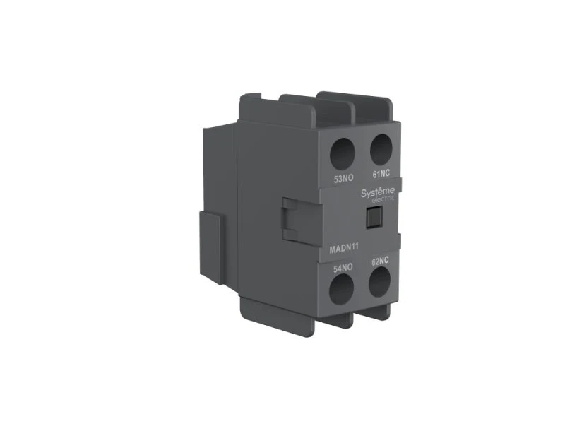 Блок дополнительных контактов для контакторов серии SystemePact MC1D, конфигурация 2НО, фронтальный монтаж с помощью винтовых зажимов. Блоки дополнительных контактов применяются совместно с контакторами и предназначены для увеличения количества вспомогательных контактов, использующихся в цепях сигнализации и управления.