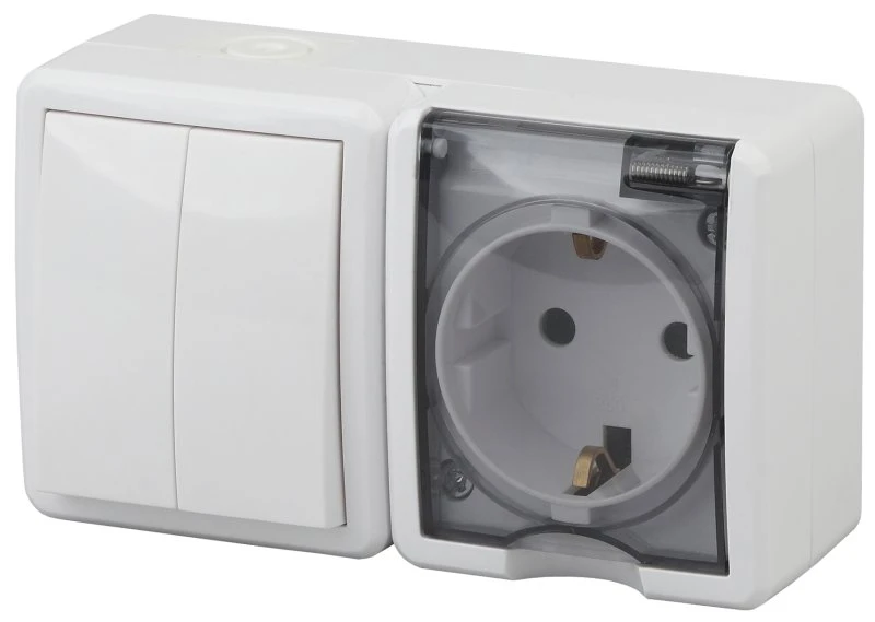 Блок розетка+выключатель двойной IP54, 16A(10AX)-250В, ОУ, Эра Эксперт, белый, 11-7402-01 ЭРА Б0020735