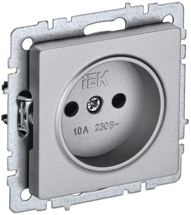 BRITE Розетка 1 пост без заземления с защитными шторками 10А РСш10-2-БрА алюминий IEK BR-R13-10-K47