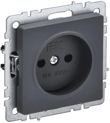 BRITE Розетка 1 пост без заземления с защитными шторками 10А РСш10-2-БрГ графит IEK BR-R13-10-K53