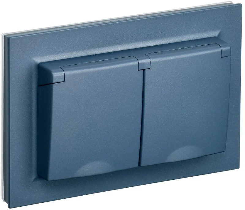 BRITE Розетка 2-местная с заземлением с защитными шторками и крышкой 16А в сборе IP44 РСбш12-3-44-БрМ маренго IEK BR-R26-16-44-K35-F