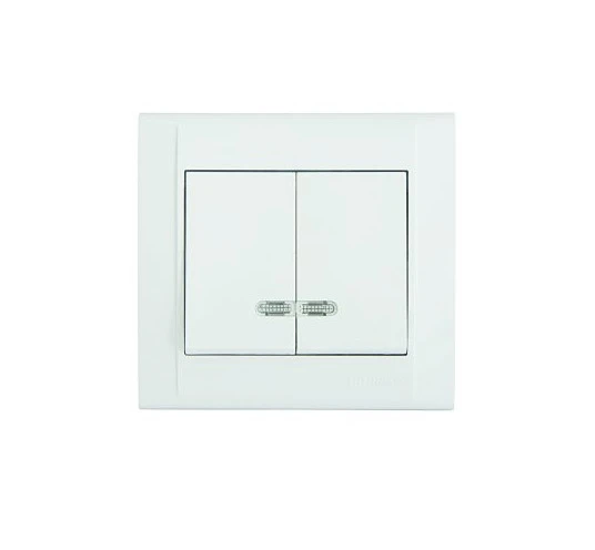 Defne Выключатель двухклавишный с подсветкой белый Makel 42001023