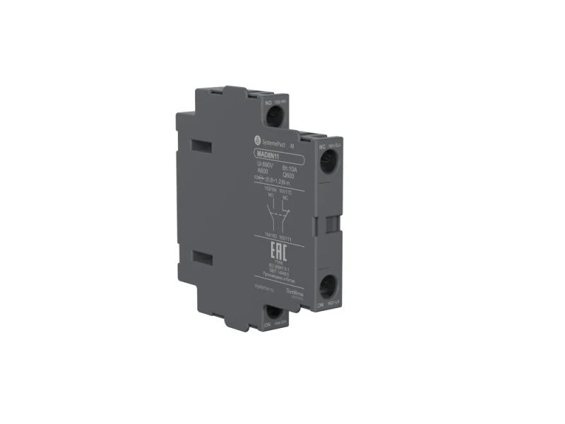 Блок дополнительных контактов для контакторов серии SystemePact MC1D, конфигурация 2НО, боковой монтаж с помощью винтовых зажимов. Блоки дополнительных контактов применяются совместно с контакторами и предназначены для увеличения количества вспомогательных контактов, использующихся в цепях сигнализации и управления.