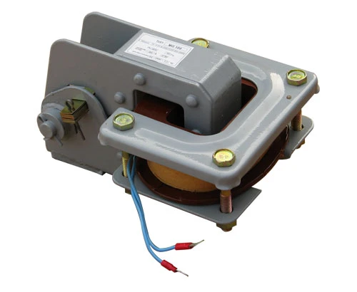 В подъемных кранах серии ТКТ, оснащенных электрическим приводом, управление тормозным устройством осуществляется при помощи тормозного электромагнита МО 100, МО 200 или МО 300. Однофазные электромагниты МО-300 220В являются электромагнитами поворотного типа.