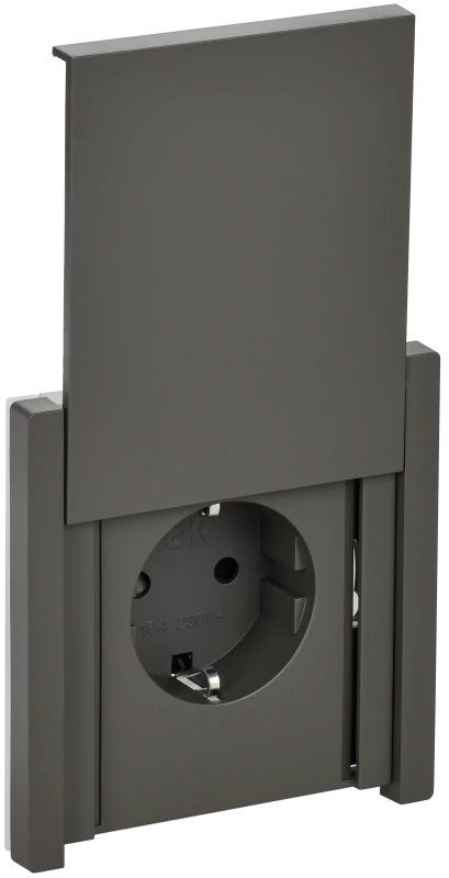 FORTE&PIANO Розетка 1-местная с заземлением с защитными шторками и крышкой винтовое крепление 16А IP44 FP321 серый IEK FP-R16-16-44-K03