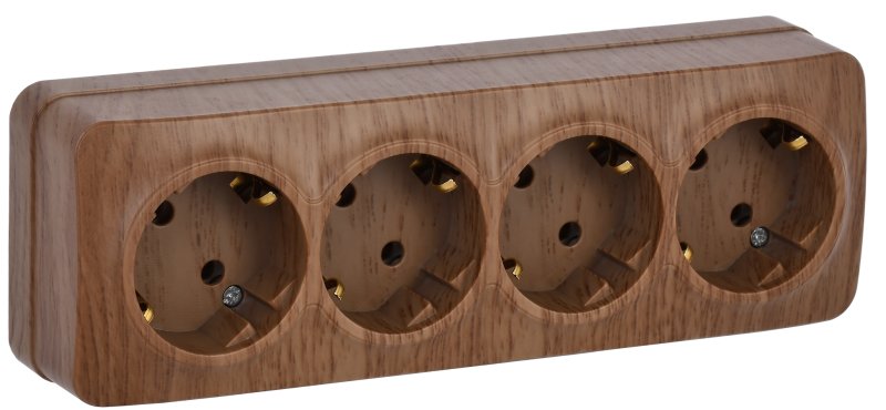 GLORY Розетка четырехместная наружная с заземлением дуб IEK ERH41-K24-16