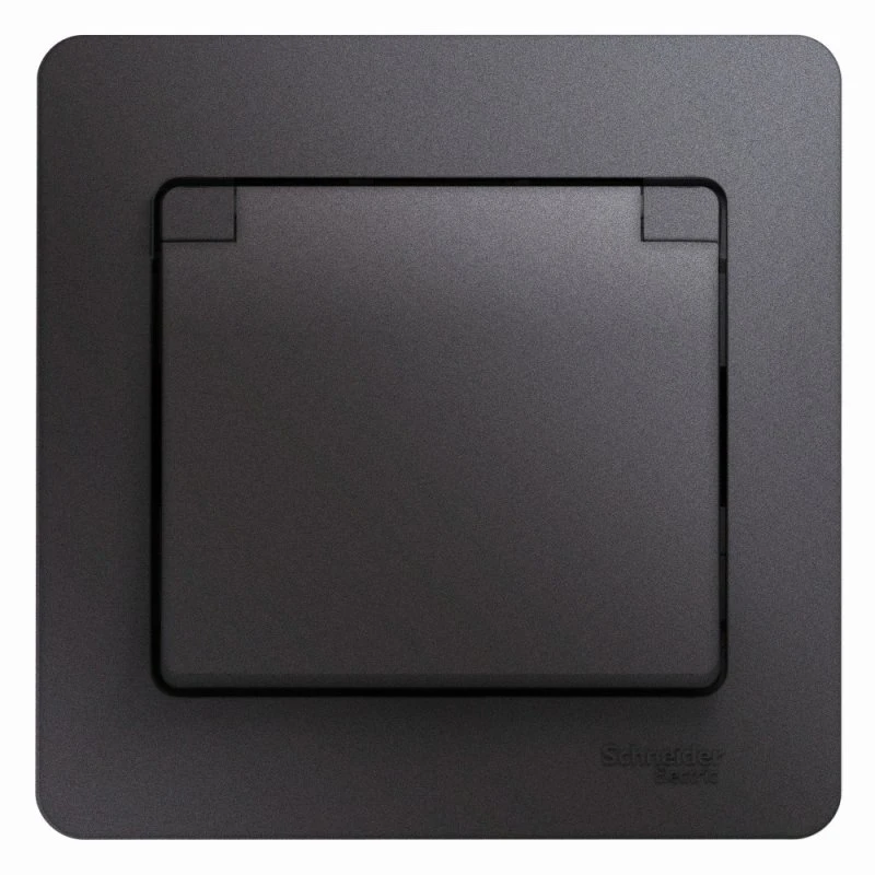 GLOSSA розетка с заземлением со шторками с крышкой в сборе IP20 графит Systeme Electric GSL001346