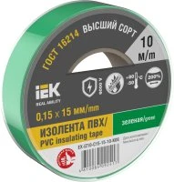 Изолента 0.15х15мм зеленая 10м IEK EX-IZ10-C15-15-10-K06