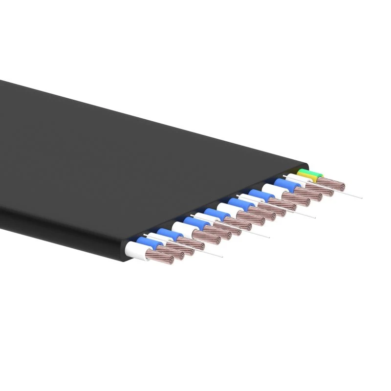 Кабель плоский лифтовый. Изготовлен из медных жил 5 класса гибкости. Сечение — 0,75 мм2. Изоляция — ПВХ пластикат. Оболочка — ПВХ пластикат. Жилы расположены в одной плоскости параллельно друг другу. Кабели предназначены для эксплуатации при температуре окружающей среды от -10 до +50 градусов С . Длительно допустимая температура нагрева токопроводящих жил не должна превышать 70 градусов С. Монтажные изгибы кабелей на радиус менее 50 мм не допускаются. Кабели могут применяться в лифтах со скоростью перемещения до 4 м/с. Максимальная длина свободно подвешенных кабелей составляет 50 м.