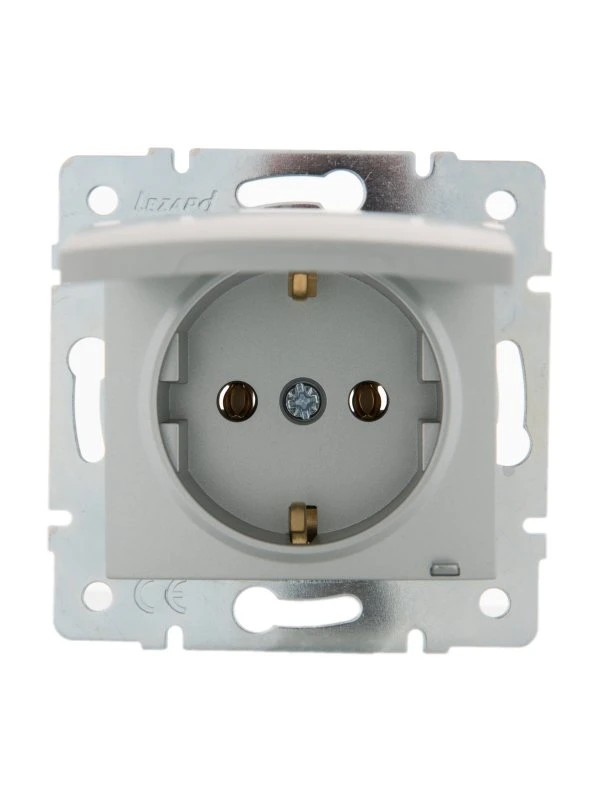KARINA Розетка с/з с крышкой ПБТ матовое серебро (10шт/120шт) Lezard 707-4388-123B