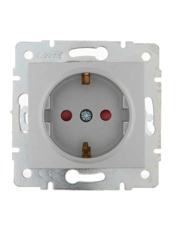 KARINA Розетка с защитой от детей керамика матовое серебро (10шт/120шт) Lezard 707-4388-124