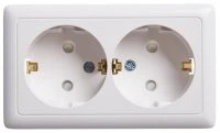 ХИТ открытой установки Розетка двойная с заземлением со шторками, 16А, белый Systeme Electric RA16-239-B