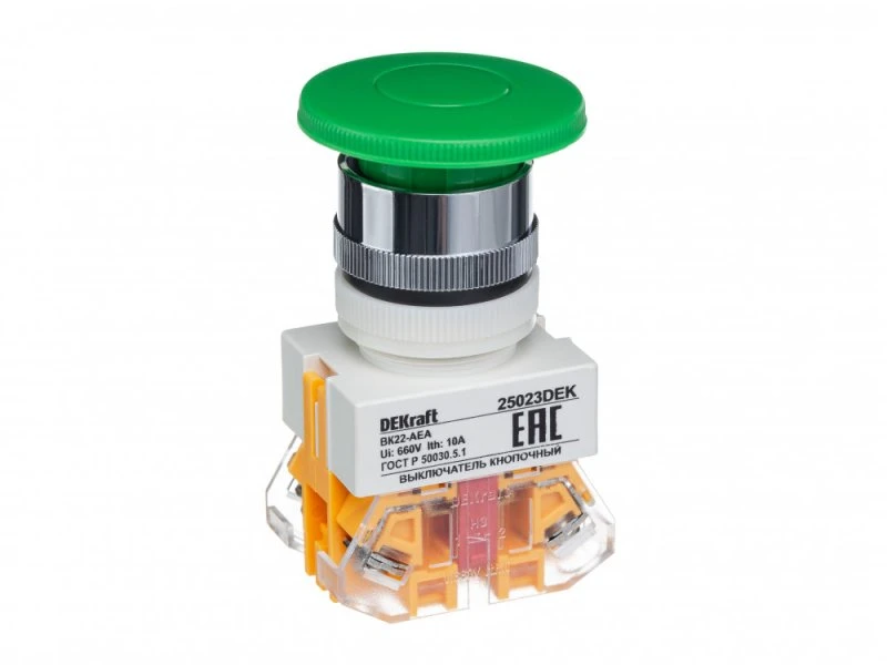 Кнопка зеленая AEA-22 Гриб 220В ВK-22 Dekraft 25023DEK