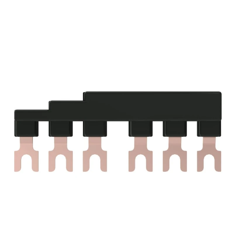 Комплект трехполюсных шин для автоматических выключателей серии SystemePact GM2, на номинальный ток до 63А, исполнение – 2 модуля по 45 мм, монтаж – сверху выключателей. Шины предназначены для правильного и надежного подключения к источнику питания нескольких автоматических выключателей, установленных на одну DIN-рейку.