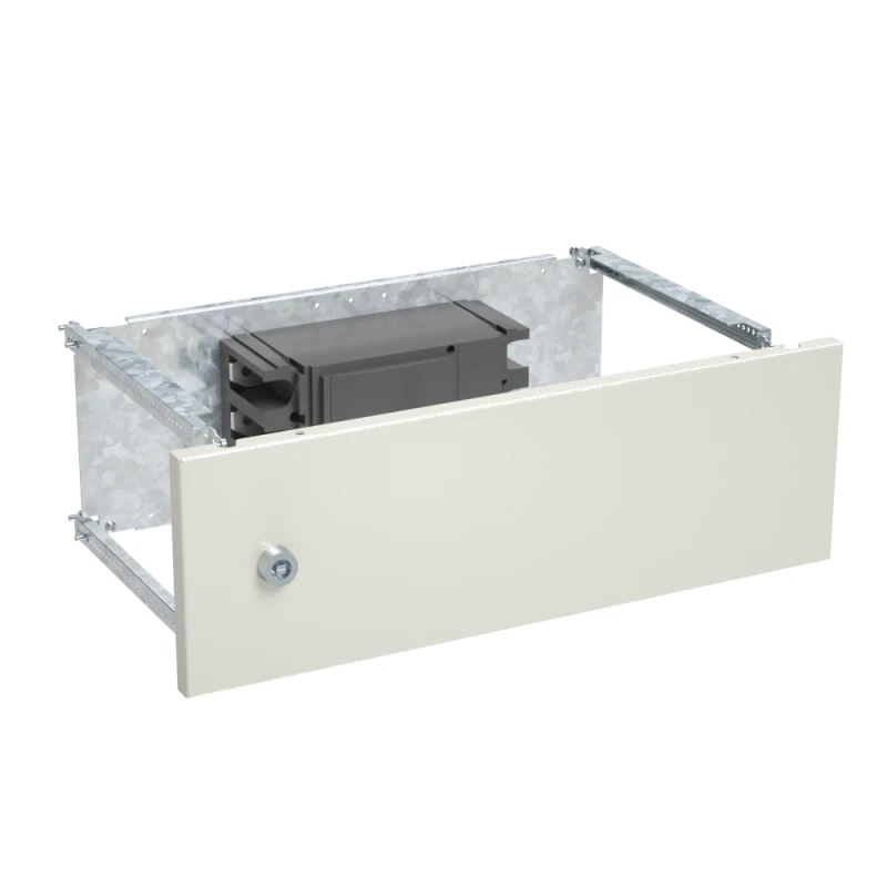 Состоит из внешней двери с замками под ключ с двойной бородкой, монтажной панели, 4 установочных профилей с кронштейнами, монтажных аксессуаров. Функциональный блок - это совокупность специальных аксессуаров для установки аппарата и его подключения. Функциональные блоки упрощают монтаж аппаратов и сокращают время сборки НКУ. Ассортимент OptiBox M включает в себя специальные комплекты функциональных блоков, состоящие из монтажных плат для монтажа автоматических выключателей и фронтальных панелей с вырезами под соответствующее устройство. Монтажные платы имеют необходимые установочные отверстия для каждого типа аппаратов в зависимости от способа их установки. Комплекты для организации функциональных блоков в конструктиве шкафов OptiBox M позволяют устанавливать следующие автоматические выключатели: OptiMat A, OptiMat D, OptiMat E.
