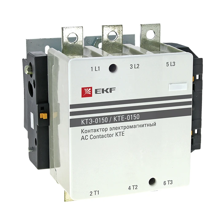 Контакторы электромагнитные серии КТЭ предназначены для использования в схемах управления для пуска и остановки трехфазных асинхронных электродвигателей с короткозамкнутым ротором в электрических сетях с напряжением до 660 В переменного тока. Могут использоваться для включения и отключения других устройств нагревательных установок, освещения, применяются в насосах, печах, вентиляторах, кранах и т.д. Преимущества. 1.Широкий ассортимент контакторов (до 630А). 2.Возможность установки двух дополнительных устройств. 3.Большой ассортимент катушек управления и других дополнительных устройств. 4.Простота замены катушки управления. 5.Меньшие габаритные размеры по сравнению с отечественными аналогами. 6.Наличие реверсивных контакторов.