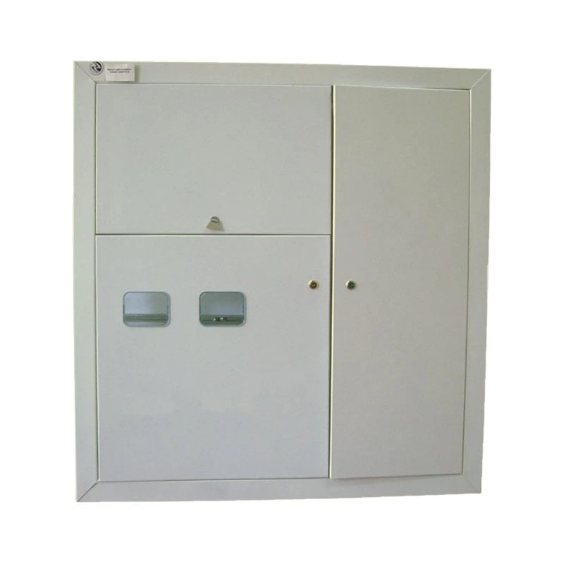 Щитки этажные под нишу размером 950х900х140 мм. Щитки этажные под стандартную нишу имеют следующие особенности - съёмный каркас для монтажа аппаратуры, возможность устанавливать на DIN-рейку до 11 модулей на квартиру, что позволяет использовать до 2 УЗО, удобное крепление фальш-панели на каркасе, увеличенное расстояние между DIN-рейками (150 мм), выполнено заземляющее соединение съёмного каркаса с рамой, а также имеется отдельный болт заземления каркаса на нулевой шине имеется дополнительное отверстие для удобства подключения N-проводника в щитках с автоматом, удобные для подключения заземляющие зажимы собственной конструкции на РЕ-шине сограничением вращения