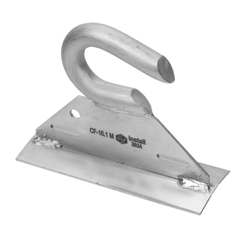 Крюк универсальный CF-16.1М предназначен для крепления анкерных или поддерживающих зажимов на опорах ВЛ. Установка на опору производится при помощи монтажной ленты и скрепы. Имеет дополнительное отверстие для присоединения проводника заземления ЗП-1М, ЗП-2М. Крюк изготовлен из стали с последующим гальваническим оцинкованием. Крюк устойчив к УФ излучению, повышенной и пониженной температуре, к тепловому и световому воздействию солнечной радиации. Продукция имеет сертификат соответствия. Продукция соответствует требованиям СТО ПАО ''Россети''. Обозначение по СТО 34.01-2.2-003 ПАО ''Россети'': УК.