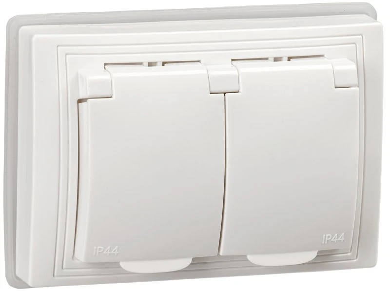 KVARTA Розетка 2-местная с заземлением с защитнымишторками с крышкой 16А IP44 РСбш12-3-ККм-44 кремовый IEK KV-R26-16-44-K33