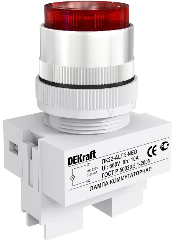 Лампа коммутационная ADDS диам. 22мм красная неон 220В Dekraft 25008DEK