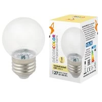 LED-G45-1W/3000K/E27/CL/С Лампа декоративная светоддиодная. Форма шар, прозрачная. Теплый белыйсвет (3000K). Картон. ТМ Volpe. Uniel UL-00005807