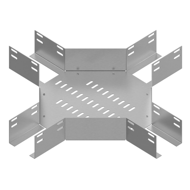Лоток крестообразный перфорированный КМ используется для одновременного получения боковых отводов (вправо и влево на 90 градусов) и продолжения кабельной трассы. Соединяется с прямыми секциями шестнадцатью винтовыми соединениями, входящими в комплект поставки.