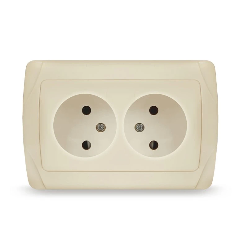 Маргарита розетка двухместная б/з, с/у, 16А, 220В, сл.кость (ivory) (еврослот) UNIVersal М0102-I