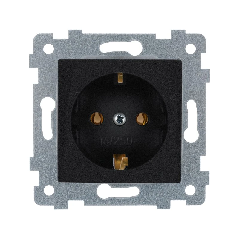 Мария Механизм розетки одноместной с заземляющим контактом скрытой установки РС16-445 Антрацит Кунцево-Электро 110038