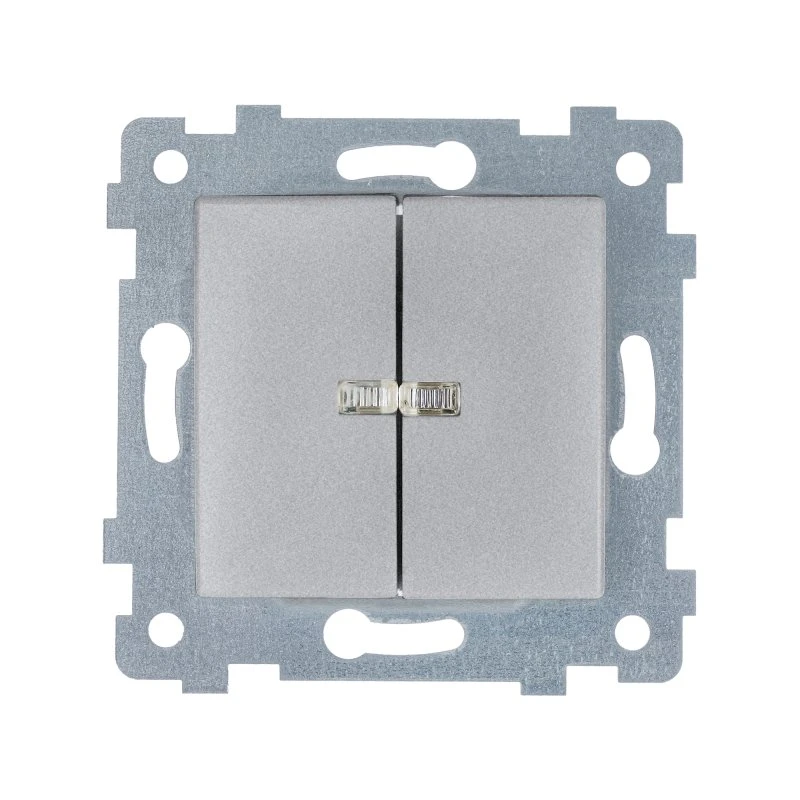 Мария Механизм выключателя двухклавишного скрытой установки со светоиндикацией С510-440 Алюминий Кунцево-Электро 110055