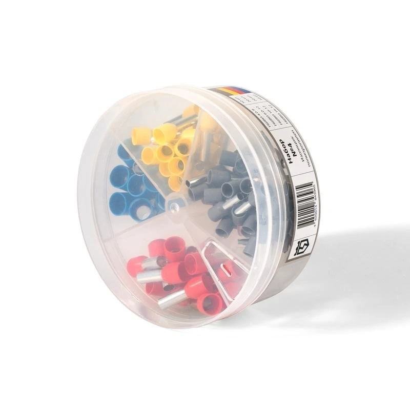 Коробка выполнена из противоударного пластика - Вращающаяся крышка с окном подачи наконечников гарантирует быстрый выбор нужного размера - Каждый из наборов содержит диапазон наиболее востребованных типов и размеров втулочных наконечников целевого назначения - Подвижная крышка имеет бортики и может использоваться в процессе монтажа как рабочая поверхность для временного хранения наконечников. При небольшом наклоне наконечники легко возвращаются в нужное отделение - Прозрачный пластик позволяет осуществлять визуальный контроль содержимого. Цветовая маркировка изолирующих манжет облегчает идентификацию и выбор необходимого сечения - Благодаря компактным размерам, набор легко помещается в кармане или сумке монтажника - Пластиковая коробка может выполнять функцию органайзера для любых миниатюрных деталей - Специальный дизайн позволяет ставить коробки одна на другую, компактно организуя рабочее пространство - Размеры - диаметр — 90 мм, высота — 40 мм - Вес набора - не более 85 г