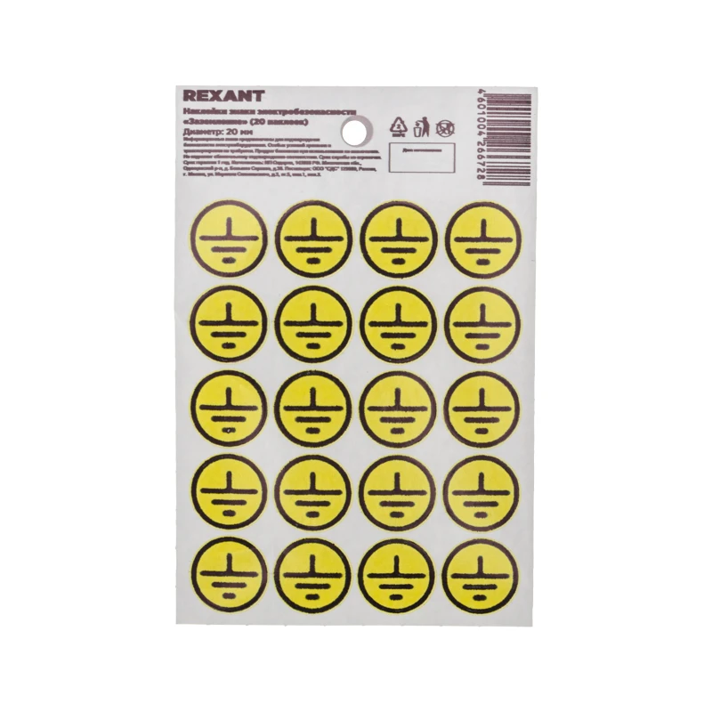 Наклейки знаки электробезопасности «Заземление» d - 20 мм (с хедером, 20 шт на листе), REXANT 56-0010-01