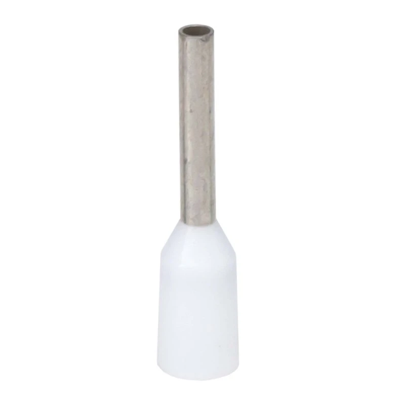 Предназначен для оконцевания многожильного проводника сечением 0.5 мм, класса гибкости 3 и выше с последующим подключением к пружинным или винтовым зажимам оборудования. Длина гильзы составляет 6 мм Покрытие - олово с содержанием висмута для повышение электропроводимости.Материал контактной части – медь М0. Материал изоляции: полипропилен, не поддерживающий горение (UL94 HB), без галогенов. Цвет изолирующей манжеты - белый.