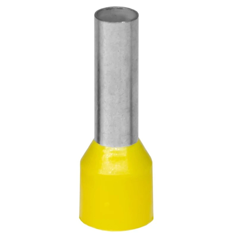 Предназначен для оконцевания многожильного проводника сечением 6 мм, класса гибкости 3 и выше с последующим подключением к пружинным или винтовым зажимам оборудования. Длина гильзы составляет 12 мм Покрытие - олово с содержанием висмута для повышение электропроводимости.Материал контактной части – медь М0. Материал изоляции: полипропилен, не поддерживающий горение (UL94 HB), без галогенов. Цвет изолирующей манжеты - желтый.