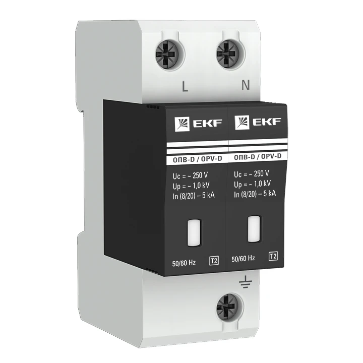 Ограничитель импульсных напряжений серии ОПВ-D/2P In 5кА 230В EKF opv-d2