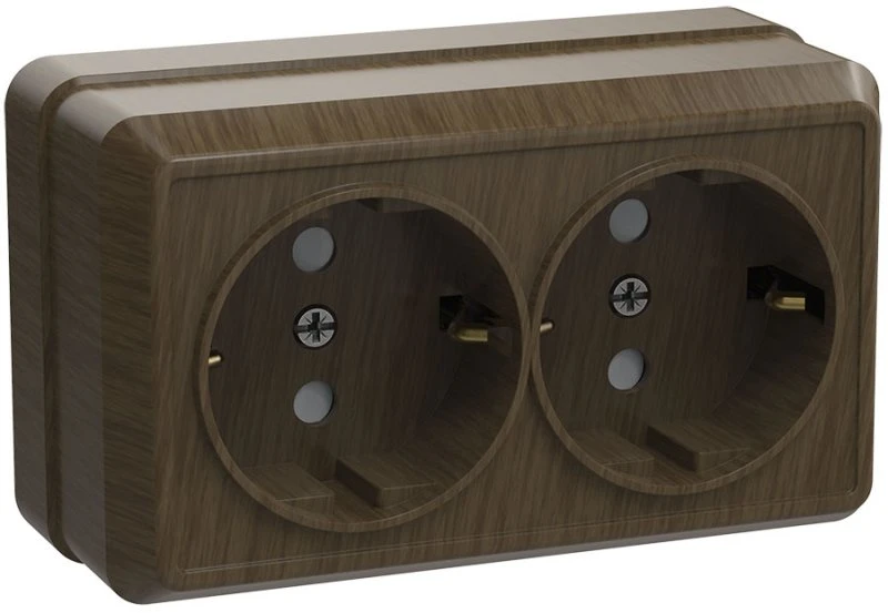 ОКТАВА Розетка двойная наружная с заземлением дуб IEK ERO21-K04-16-DC