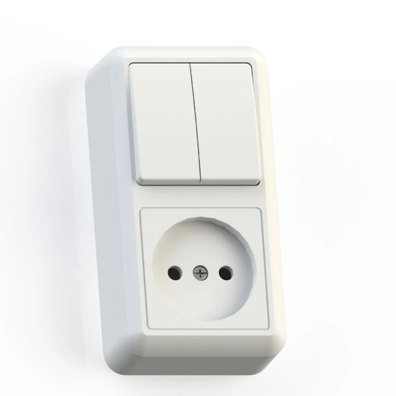 ОПТИМА Блок комбинированный открытой установки (двухклавишный выключатель+ розетка) БКВР-404, белый Кунцево-Электро 8062