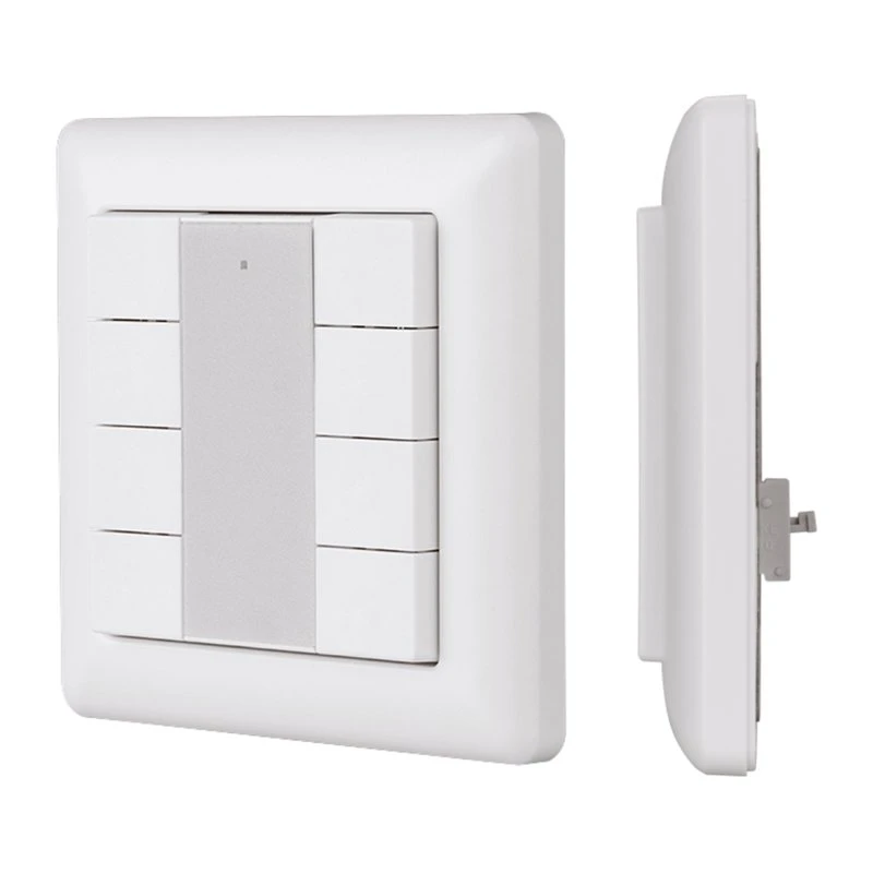 Встраиваемая кнопочная белая пластиковая панель для работы по протоколу DALI-2. 8 кнопок свободного функционала. Назначение кнопок задается с мастер-контроллера серии DALI-LOGIC-x. Питание от шины DALI (4 мА).