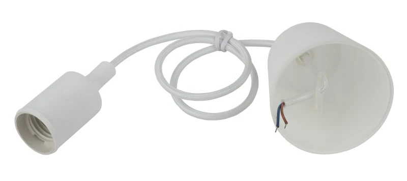 патрон с подвесом, длина провода 80 см, изготавливается из термостойкого пластик.а, материал химически устойчивый к агрессивным средам, обладает высокой прочностью и теплостойкостью, не обладает способностью выдерживать высокие температуры нагрева, поэтому его чаще всего используют для ламп накаливания мощностью не более 60 Вт.