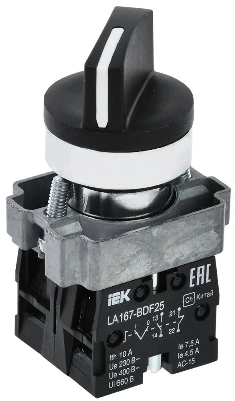 Переключатель LA167-BDF25 2 полож. 1з+1р черный IEK BSW20-BDF25-3-24-67-2-K02
