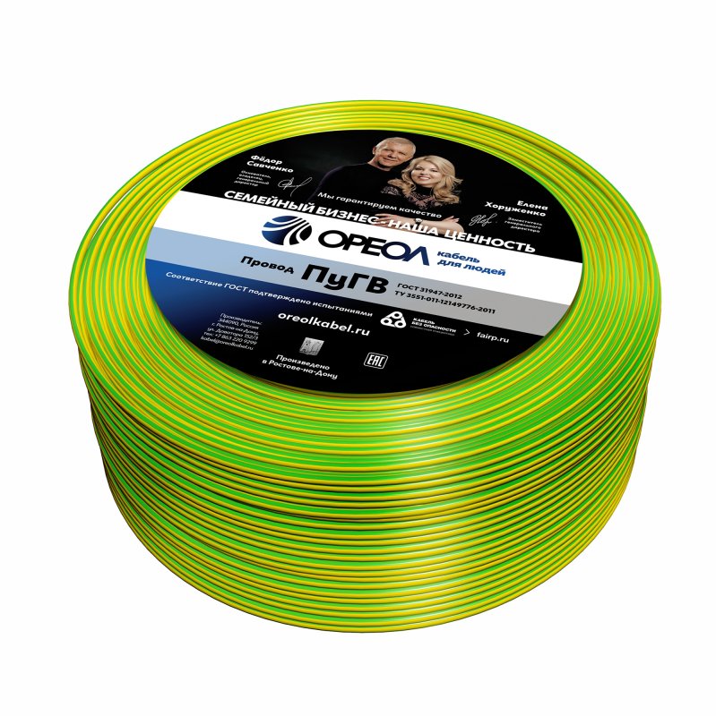 Провод силовой ПУГВ 1х0.5желто-зеленый ТРТС Ореол 00-00001007