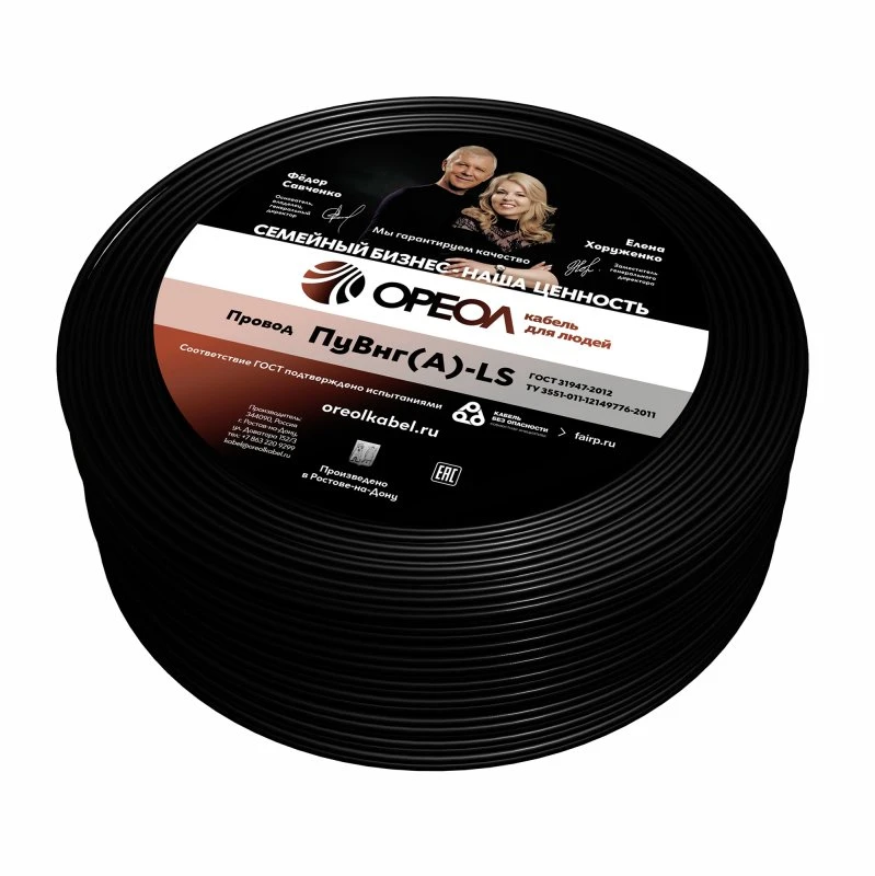 Провод силовой ПуВнг(А)-LS 1х1черный ТРТС Ореол 00-00000999