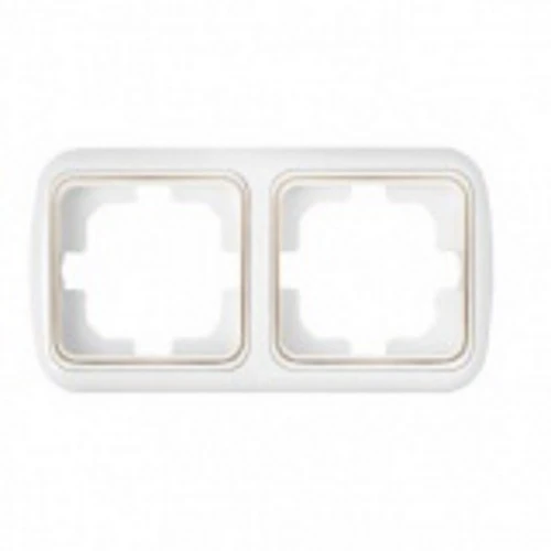 Рамка двухместная белая. Устанавливается в вертикальном и горизонтальном положениях. Лицевые детали из качественного ABS-пластика, устойчивого к царапинам и УФ-излучению. Позволяет гармонично вписать электроустановочное изделие в интерьер помещения.